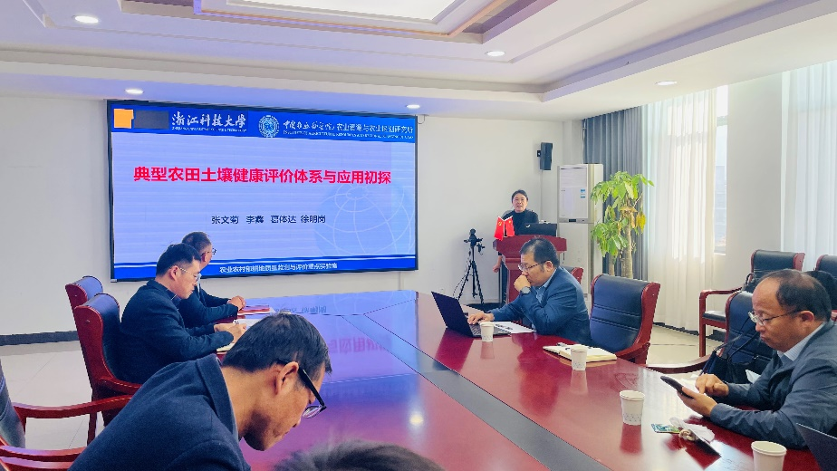 并作“3R”论坛第55期学术报告“典型农田土壤健康评价体系与应用初探”。报告由学院副院长张进教授主持,环境工程系教师及研究生等三十余人参加了报告会。