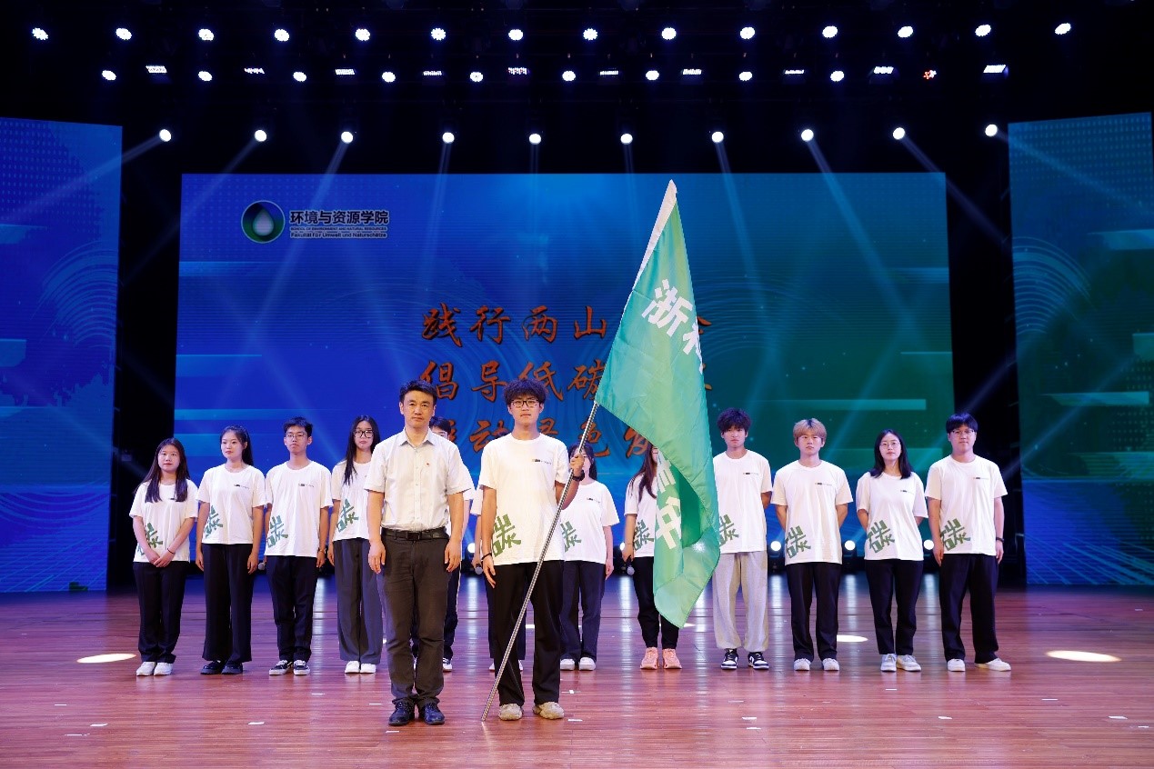 践行“两山”理念“零碳青年”暑期社会实践团队授旗。