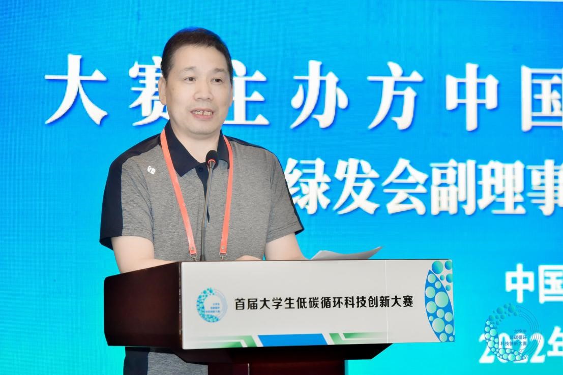 周晋峰代表大赛主办方致辞,他指出,在“十四五”开局之年,中国处在“碳达峰”的关键期和窗口期,要抓住机遇乘势而上,确保2030年前实现“碳达峰”、2060年前实现“碳中和”的战略目标,举办低碳循环大赛具有重要意义。作为大赛主办单位,中国绿发会希望将大赛办成高层次的高校学科竞赛,充分调动大学生群体参与绿色低碳创新,促进生态环境保护与碳达峰碳中和行动。中国绿发会也将一如既往地支持大赛的举办,并希望借助本次大赛进一步提升大学生绿色创新能力,更好地服务于“3060”目标的达成。