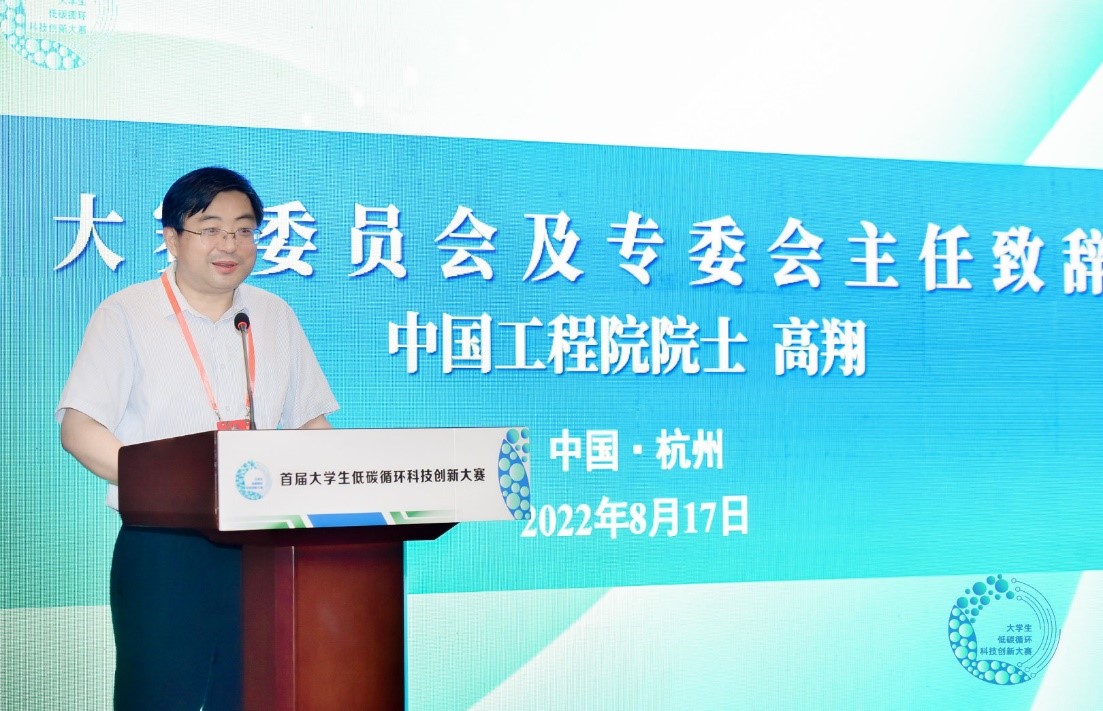 8月16-17日,首届大学生低碳循环科技创新大赛在杭州举行。中国工程院院士、大学生低碳循环科技创新大赛委员会主任高翔,中国绿发会副理事长、秘书长周晋峰等领导出席决赛开幕式。来自北京大学、浙江大学、中国社科院大学、华东师范大学、北京林业大学等全国各地的15位专家评委出席此次大赛决赛开幕式。开幕式由浙江科技学院副校长单胜道主持。
