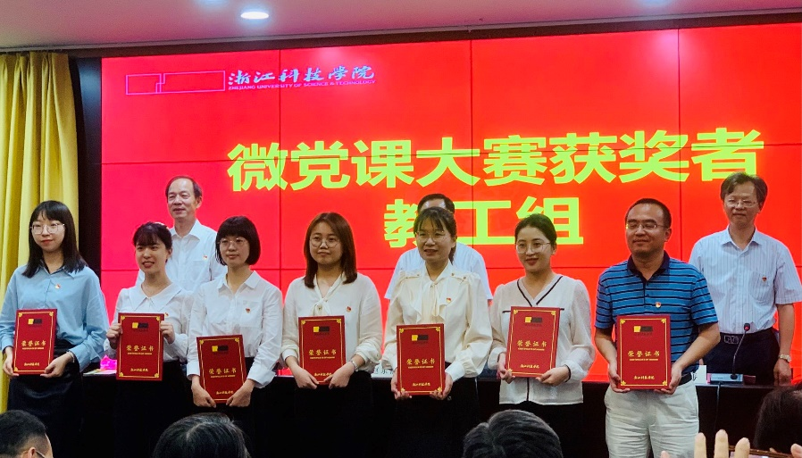 轻化系教师党支部获“红星党支部”;李莹老师“白+黑”版的双碳故事获校第二届微型党课大赛教工组二等奖,表彰大会上,校领导为获奖单位和老师颁发了证书。