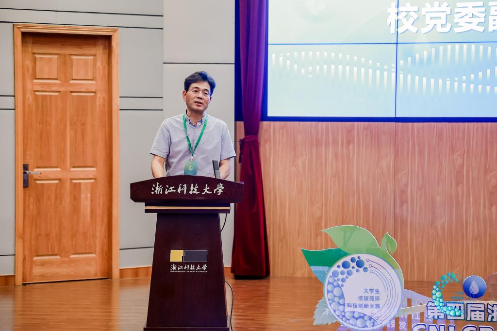 党委副书记单胜道,浙江省绿色科技文化促进会秘书长董舒,浙江省生态环境厅首席专家孙璐等出席决赛开幕式。来自浙江大学、北控水务集团等高校、企业的12位专家评委以及近30所本科高校的50余组决赛项目师生代表参加开幕式。开幕式由杏吧视频