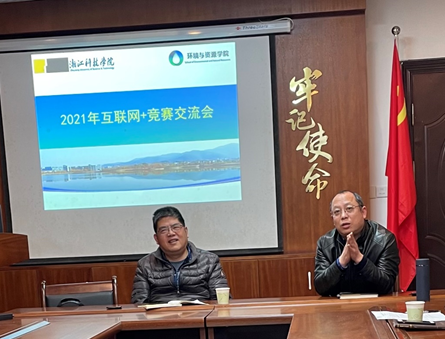 沙力争院长主持了这次会议,胡志军副院长、各项目指导老师和环境学院参赛同学们也参会交流学习。