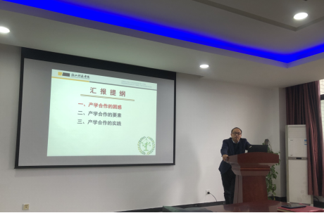 成立以来所取得的业绩给予高度赞赏与肯定,并对产学合作过程中的困惑做了简要的叙述,随后详细讲解了政产学研的基本模式、高校以及企业和政府在政产学研过程中所考虑的核心指标和产学合作的要素(以食品方向为实际案例),重点阐述产学合作的“三精准”要义、产学合作长效机制的构建、高校和企业在产学融合机制中的实际利益以及建立产学研导向的科技推动产业模式的意义和重要性。最后,肖教授以科研报奖为例讲解构建产学合作长效机制的方式、过程、技术瓶颈和成果转化等环节并和参会就科研奖励申报事宜做了互动交流,强调科学技术奖励申报过程的艰巨性和长期性,需要一以贯之坚定目标,实现持续性发展和推进。