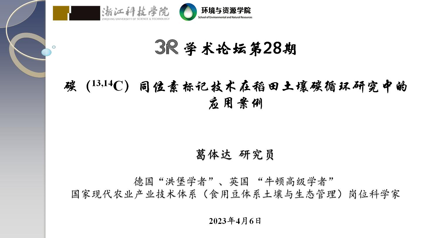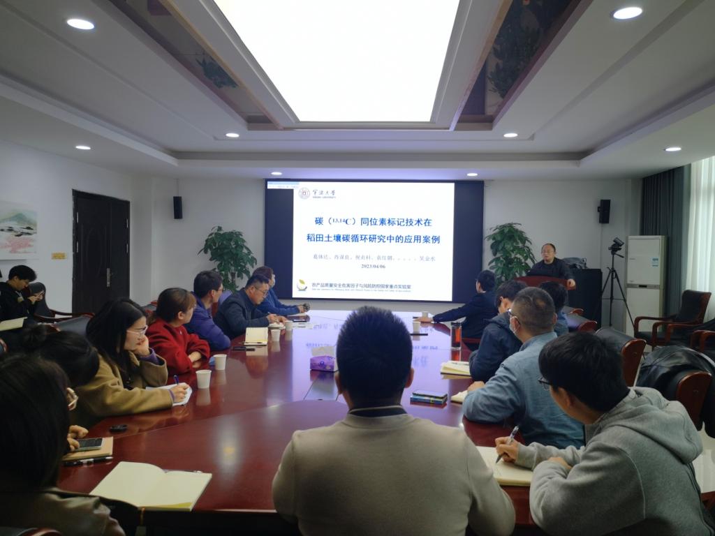 并作题为“碳(13, 14C)同位素标记技术在稻田土壤碳循环研究中的应用案例”的学术报告,报告由学院副院长张进教授主持,学院环境工程系教师、研究生等30余人参加了报告会。