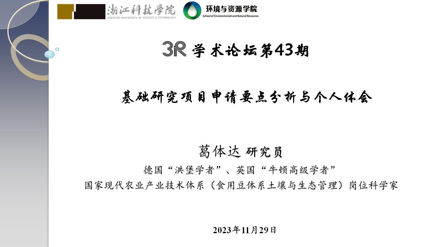 2023年11月29日上午,宁波大学植物病毒学研究所葛体达研究员来访学院并分别作题为“基础研究项目申请要点分析与个人体会”的学术报告,报告会由杏吧视频
