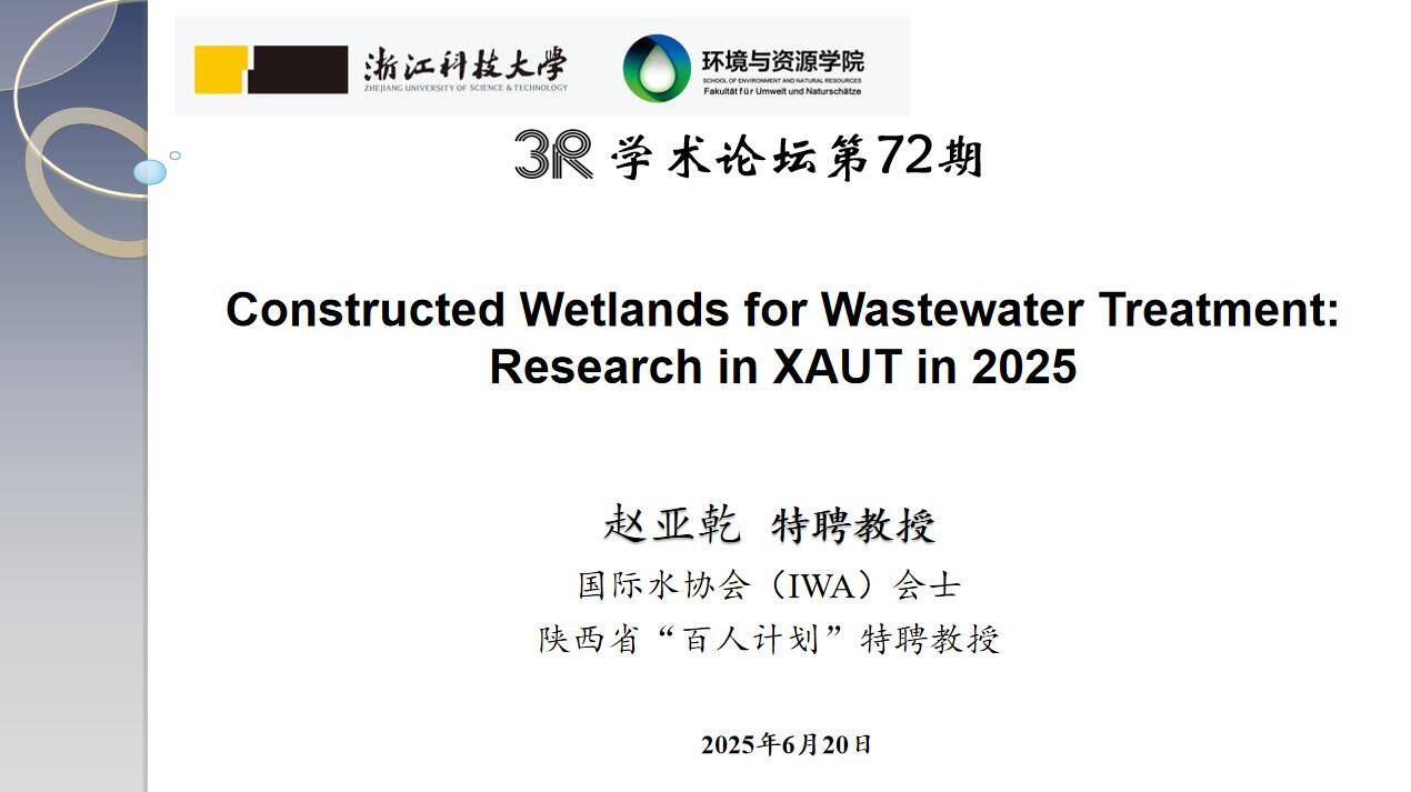 并作“3R”论坛第72期学术报告“Constructed Wetlands for Wastewater Treatment: Research in XAUT in 2025”。报告由学院副院长张进教授主持,环境工程系教师、研究生等30余人参加了报告会。