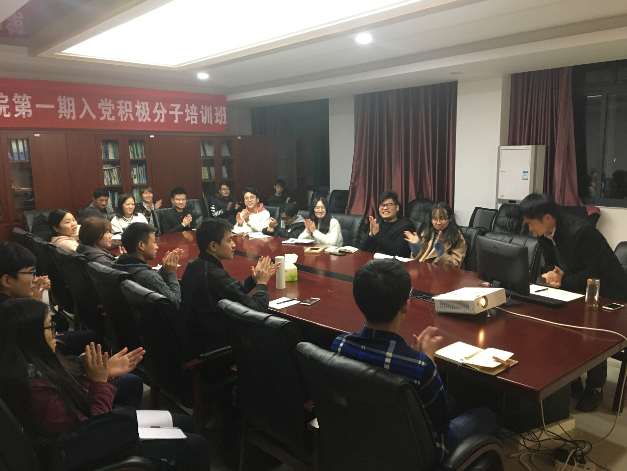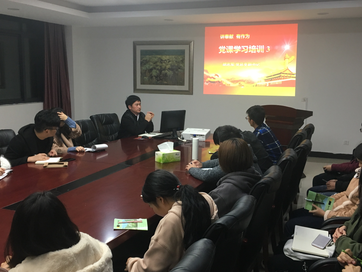 1129日晚六点半杏吧视频 第一期入党积极分子培训班第三讲于实验大楼609开课,本期主讲人为杏吧视频 党总支副书记胡志军老师。