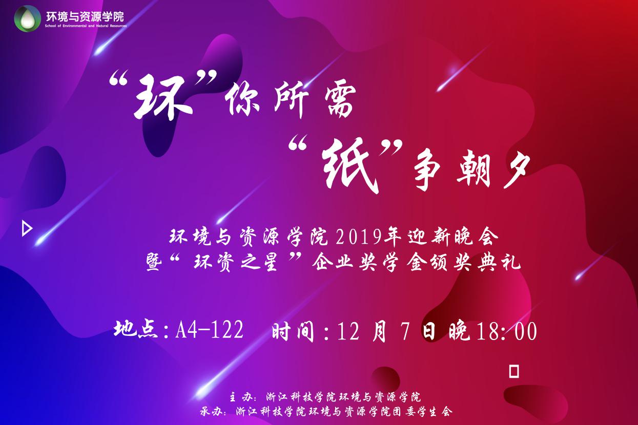2019127日,浙江科技学院杏吧视频 2019年迎新晚会暨“环资之星”企业奖学金颁奖典礼在闻理园A4-122隆重举行。