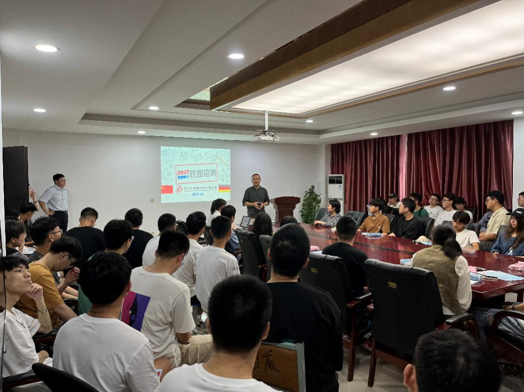 举行2022届本科毕业生首场招聘宣讲会。华邦古楼新材料有限公司陈建斌总工、田雪松总监及徐媛经理一行三人应邀来院宣讲,学院书记李俊、轻化工程系主任郭大亮副教授及许银超博士参加了宣讲会。